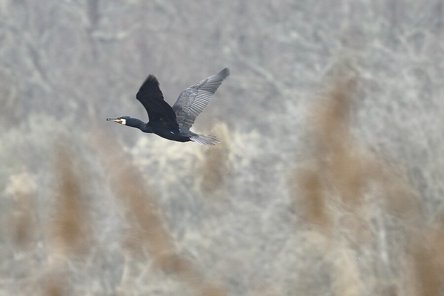 Dans les marais de mars, le cormoran solitaire change de mare. A la bordure du bosquet de chênes moussus, la dernière aigrette quitte son perchoir ...